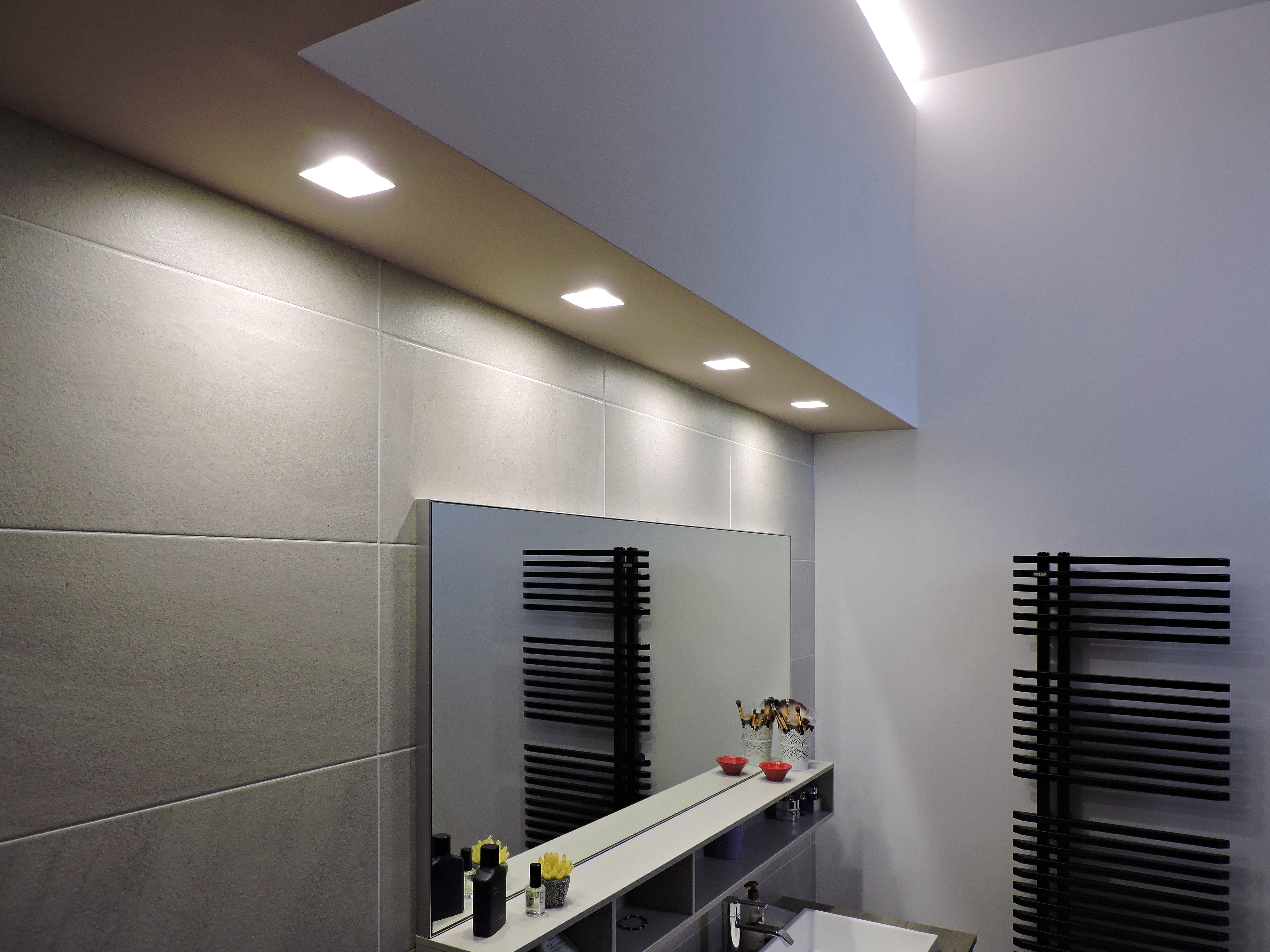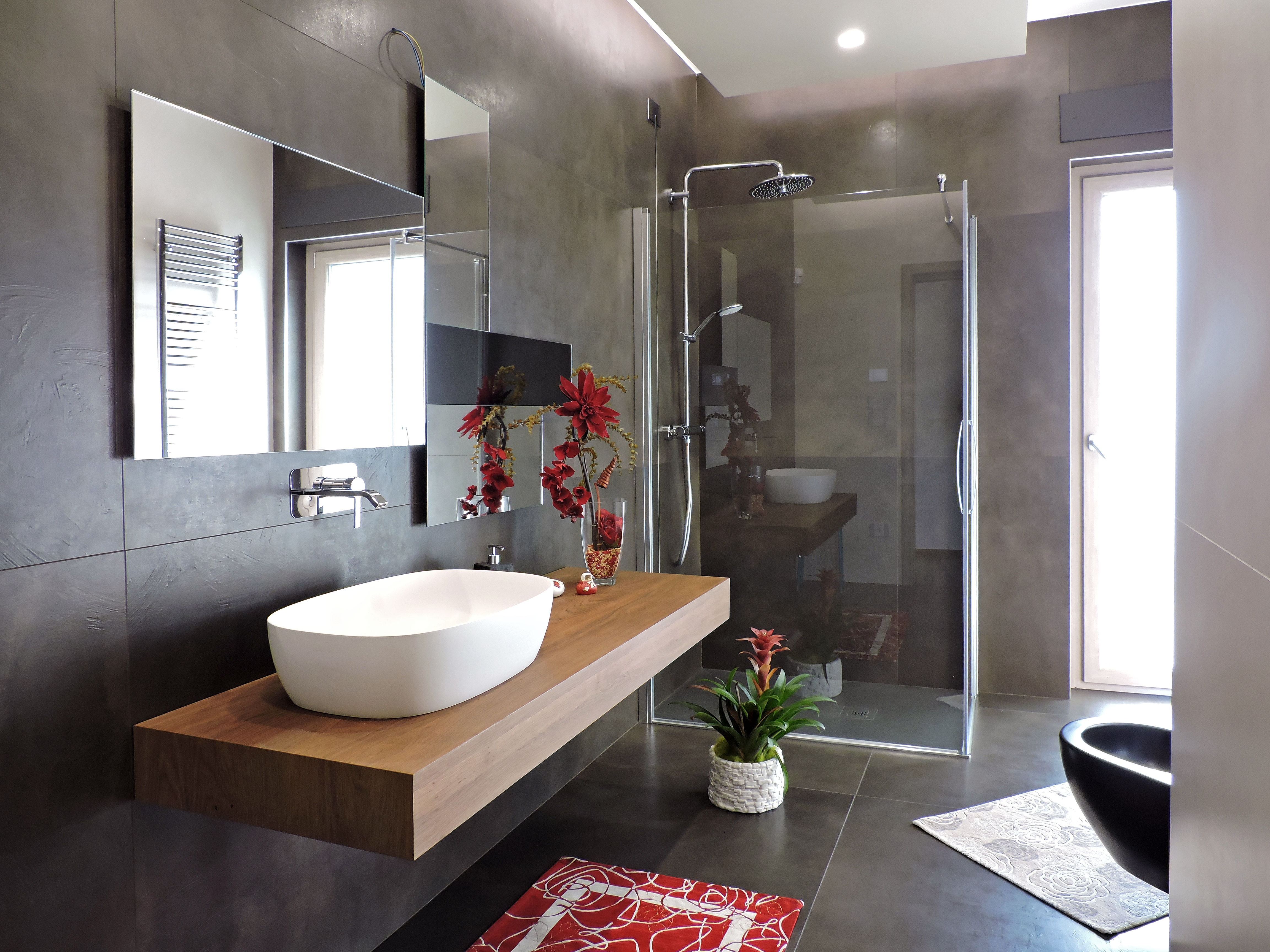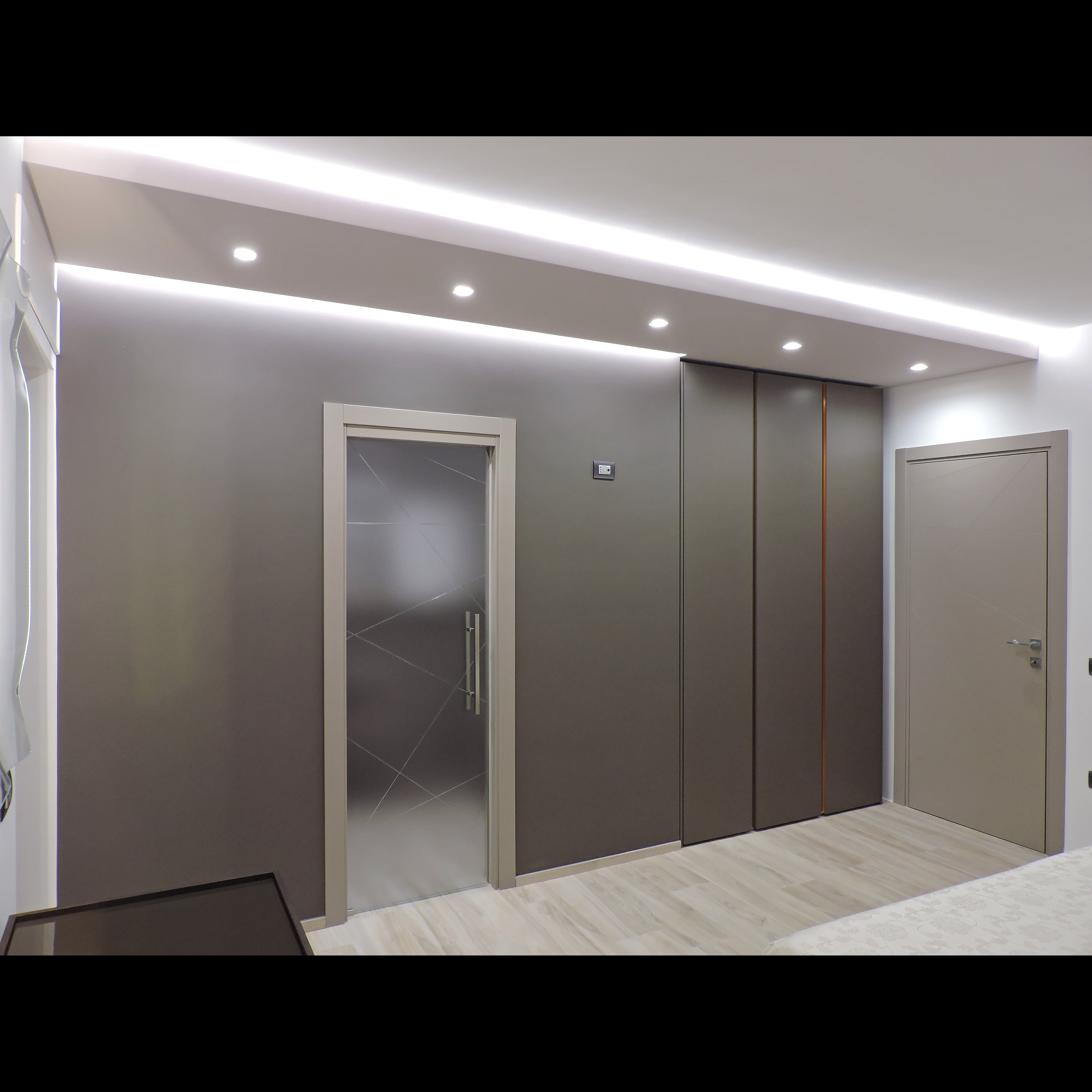 Il primo piano, accessibile mediante scala o ascensore interno, è dedicato alla zona notte, composta da una camera doppia, una camera padronale con bagno in camera e un bagno con vasca freestanding. Il tutto distribuito intorno al disimpegno-ballatoio su cui sbarcano la scala e l’ascensore, caratterizzato da un’intensa illuminazione artificiale zenitale a effetto lucernaio.